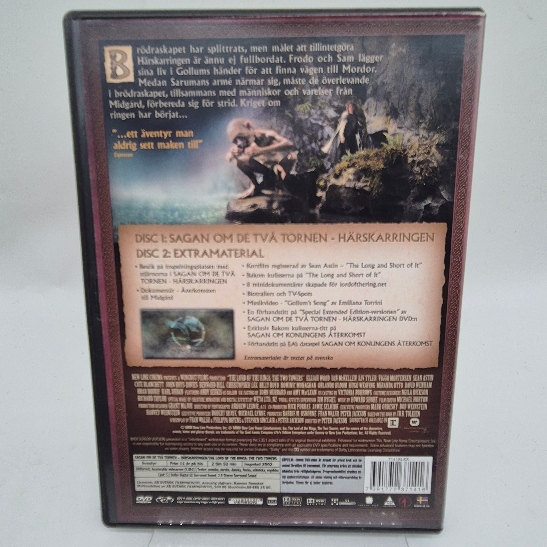 Denna DVD, “Sagan om de två tornen”, är den andra delen i den berömda trilogin om Härskarringen. Filmen är packad med action, drama och en fantastisk berättelse som engagerar tittare av alla åldrar. Skivan inkluderar inte bara huvudfilmen utan även en skiva med omfattande extramaterial som gör tittarupplevelsen extra speciell. Denna utgåva är begagnad men fortfarande i mycket gott skick, ett måste för samlare och filmälskare.Produktspecifikationer