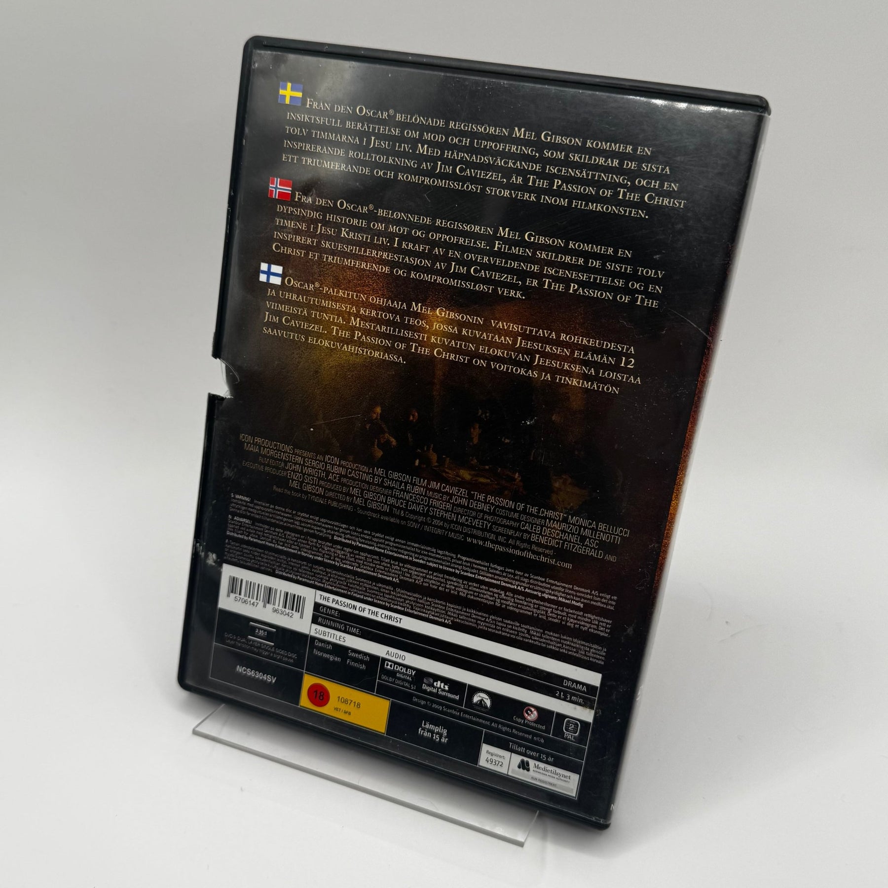 DVD-film "The Passion of the Christ", regisserad av Mel Gibson. Filmen skildrar de sista timmarna i Jesu liv med intensivt drama och har en stark emotionell inverkan. DVD:n är begagnad men i gott skick.