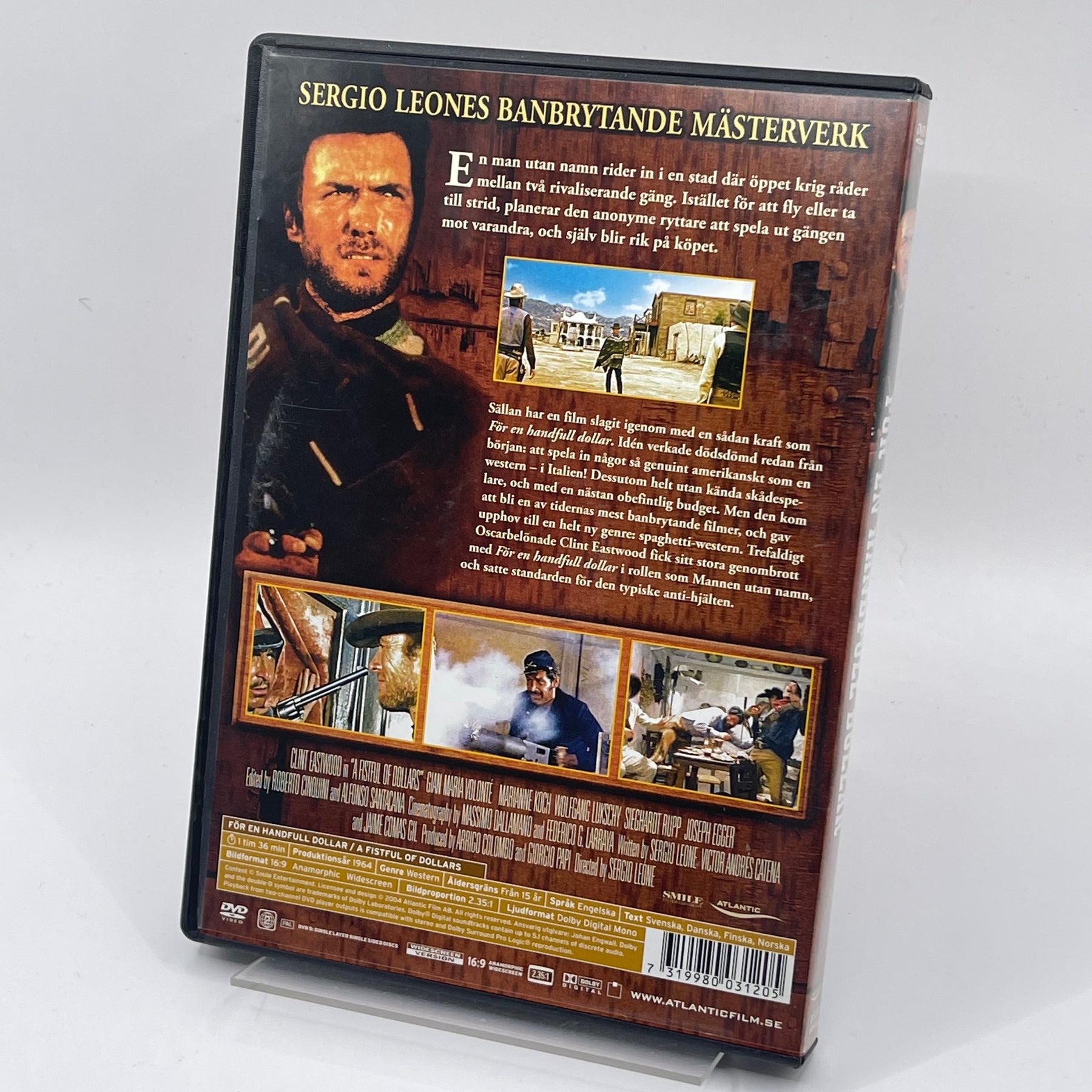 Denna DVD "För en Handfull Dollar" presenterar Sergio Leones banbrytande mästerverk som inte bara definierade spaghettiwesterngenren utan också förvandlade Clint Eastwood till en internationell filmikon. Introducerande en stil och berättarteknik som är lika fängslande idag som vid premiären. Filmen är i begagnat skick men väl bevarad, vilket gör den till ett utmärkt tillskott i varje filmsamlings arsenal.Produktspecifikationer