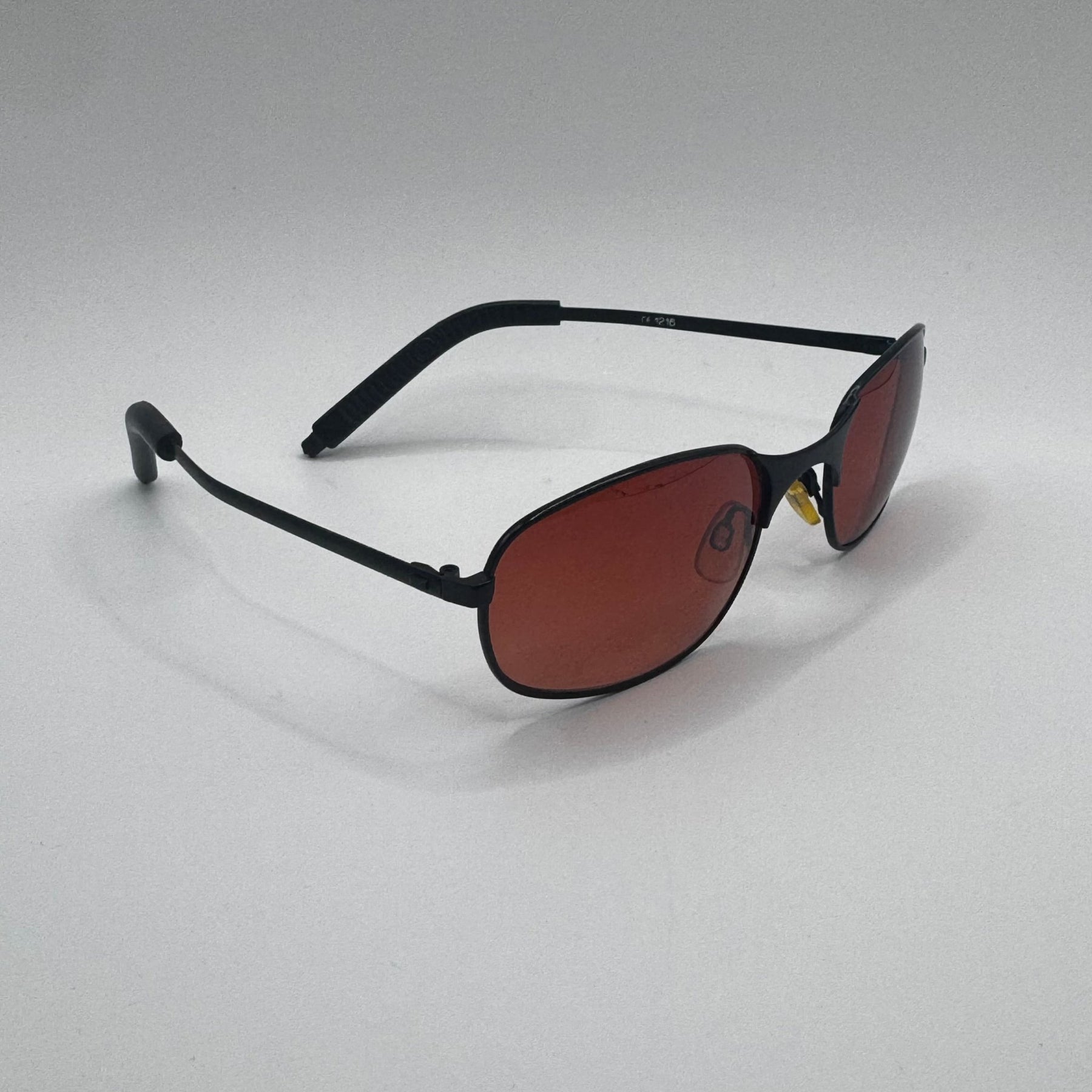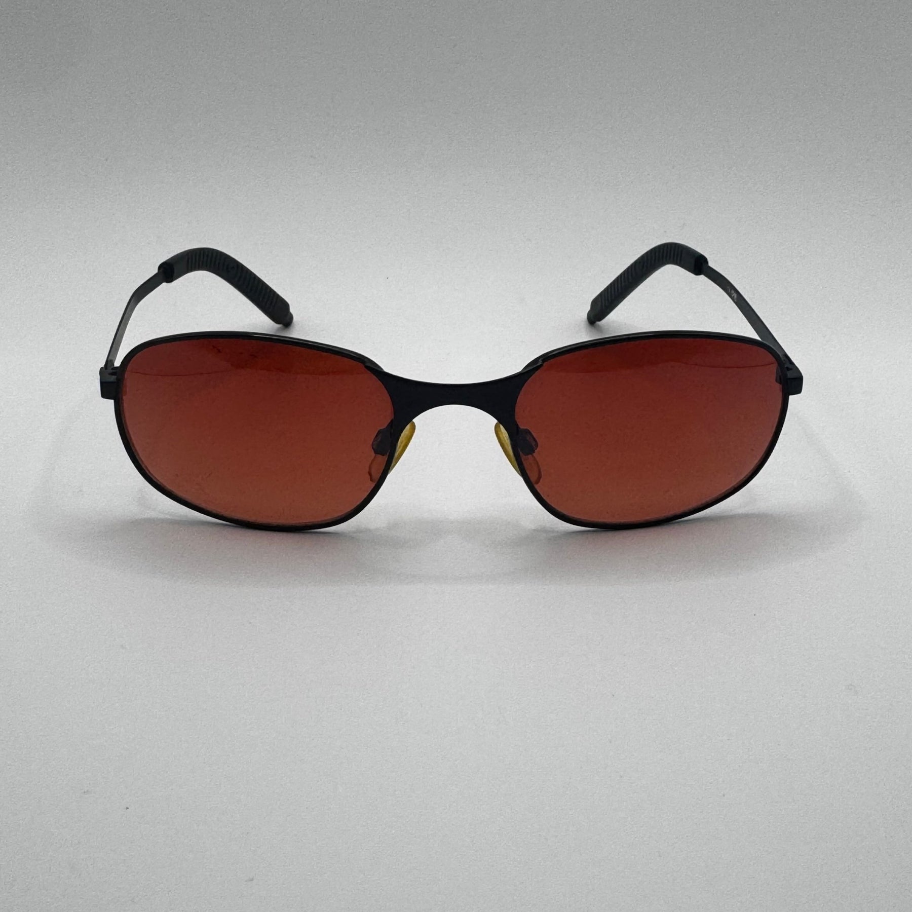 Dessa solglasögon kännetecknas av en slank och lätt design med röda linser och en robust svart båge. Även om varumärket inte är synligt, utstrålar glasögonen en klassisk elegans. Den diskreta färgkombinationen och det hållbara materialet gör dem till ett ypperligt val för både vardagligt bruk och sportaktiviteter. De är begagnade men i mycket gott skick, vilket gör dem till ett fantastiskt fynd.3. Produktspecifikationer