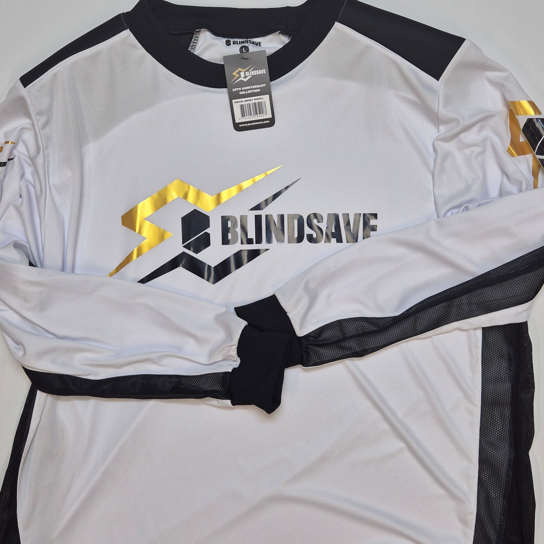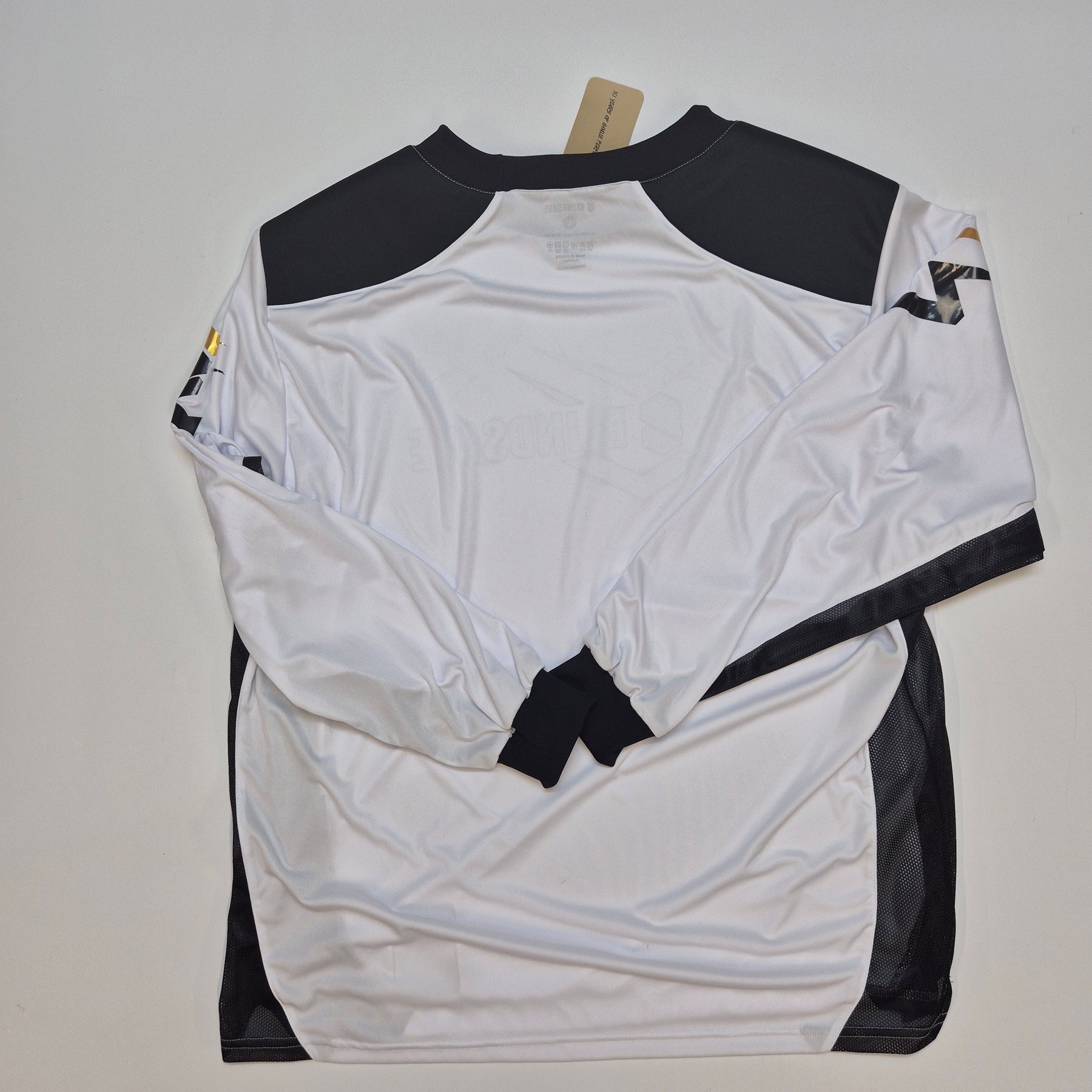 Denna långärmade sporttröja från BLINDSAVE är inte bara snygg med sitt dynamiska mönster och färgkontraster i svart, vitt och guld, den är också designad för att erbjuda optimal komfort och rörlighet under träningen. Tröjan är tillverkad i högkvalitativa material för att hålla dig torr och bekväm. Ny med etiketter – aldrig använd och i perfekt skick, vilket gör den idealisk för både aktiva sportutövare och samlare av sportkläder.Produktspecifikationer