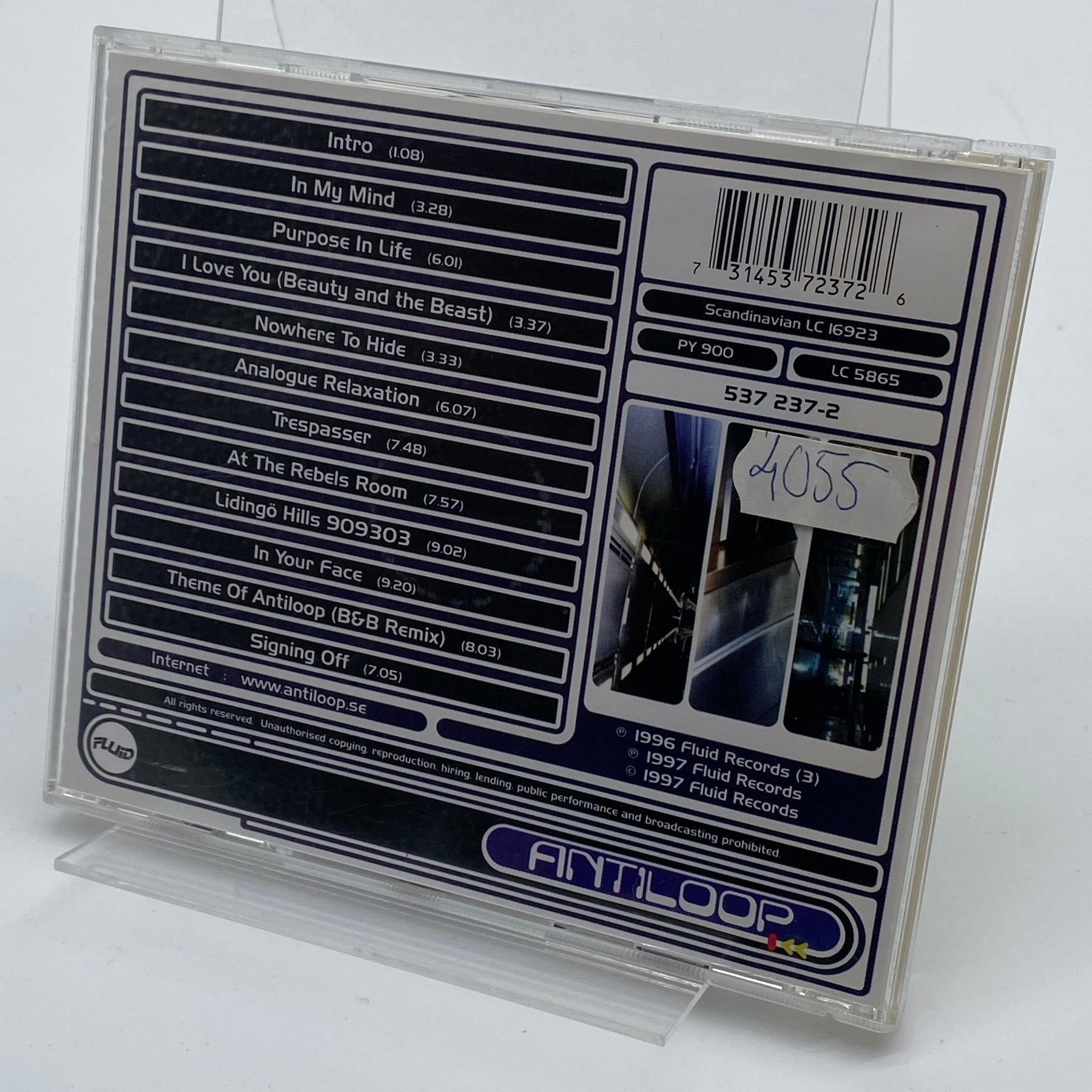 En begagnad musik-CD med gruppen Antiloop. Albumet inkluderar populära låtar som "In My Mind" och "I Love You". Förpackningen och skivan är i gott skick, idealisk för samlare eller fans av 90-tals elektronisk musik.