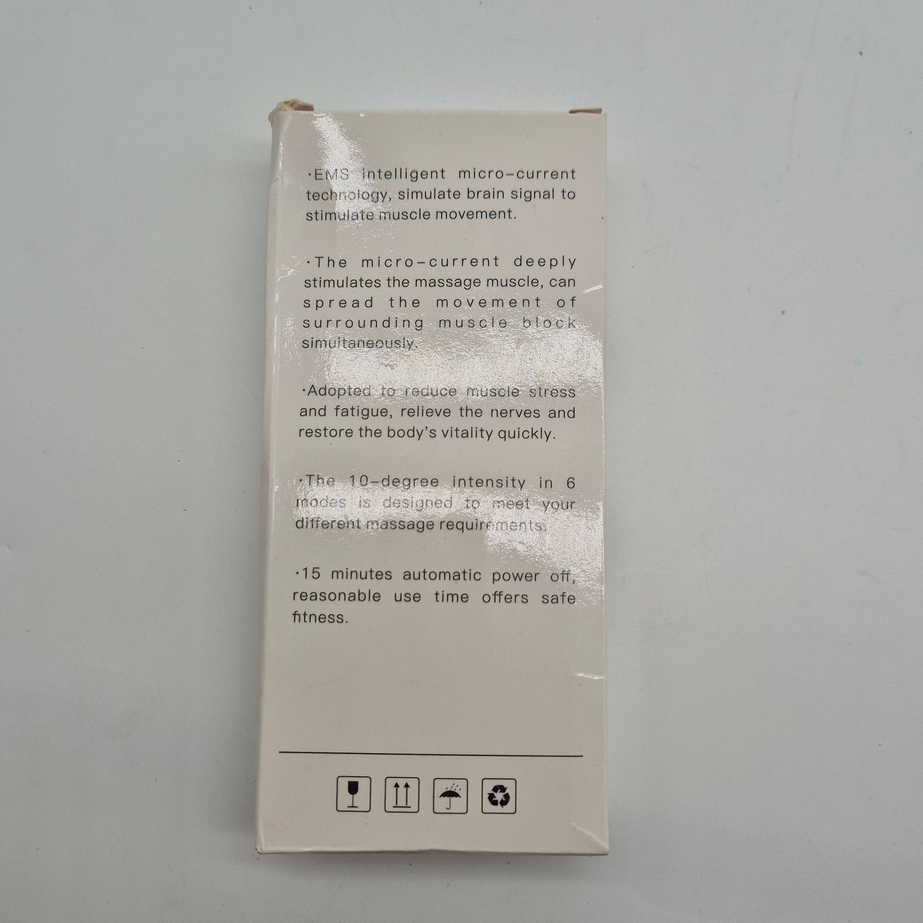 Denna innovativa EMS-tränare använder mikroströmmar för att stimulera muskler aktivt, vilket ger en effektiv muskeltoning och massering hemma. Med sex olika intensitetslägen anpassar du lätt efter ditt personliga behov av muskelavslappning eller aktiv träning. Förpackad i nytt skick och klart för att förbättra din dagliga träning och återhämtning.Produktspecifikationer