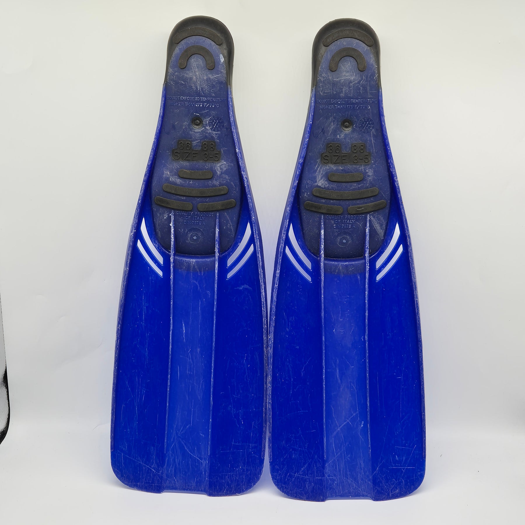 Upptäck friheten under vattnet med dessa högkvalitativa simfenor från Italien. Med en robust design och en övertygande blå färg, är dessa fenor designade för effektivitet och komfort under simning. Dessa simfenor är perfekta för såväl nybörjare som erfarna dykare, och förblir bekväma även under långa simsessioner. Använda men i gott skick, de är ett idealiskt val för den kostnadsmedvetna äventyraren.Produktspecifikationer