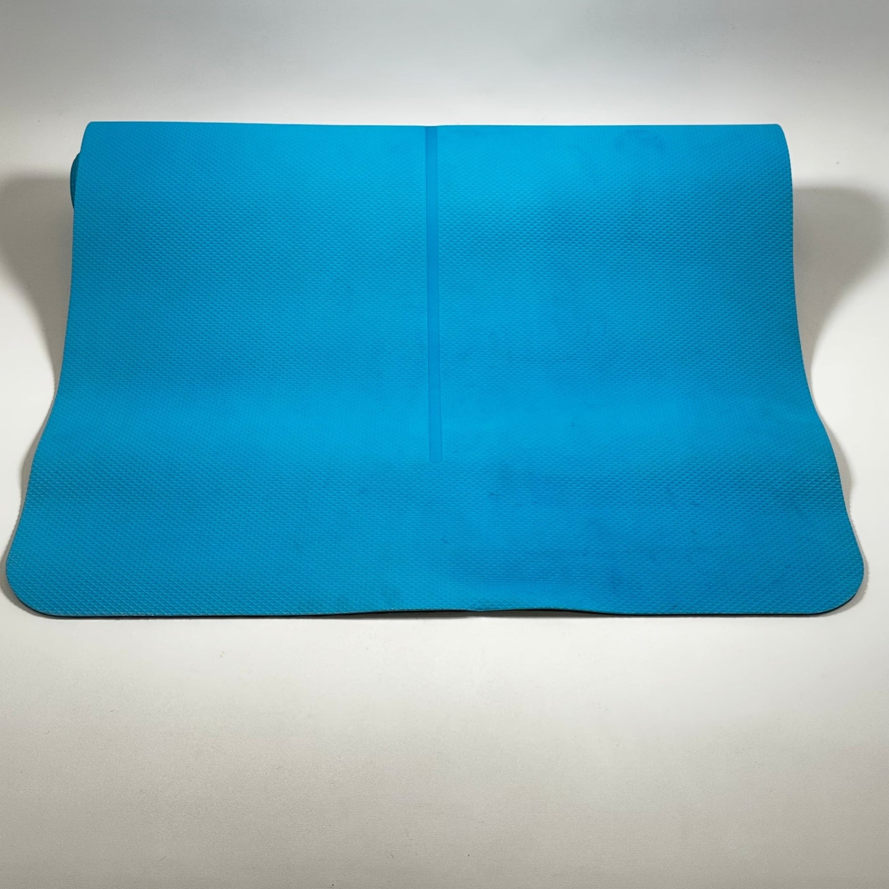 Denna använda yogamatta är perfekt för både nybörjare och erfarna yogautövare. Mattan är i gott skick och dess tjocklek ger bra stöd och komfort under yogaövningar. Den har en livlig blå färg som passar väl i en lugn och inspirerande träningsmiljö.