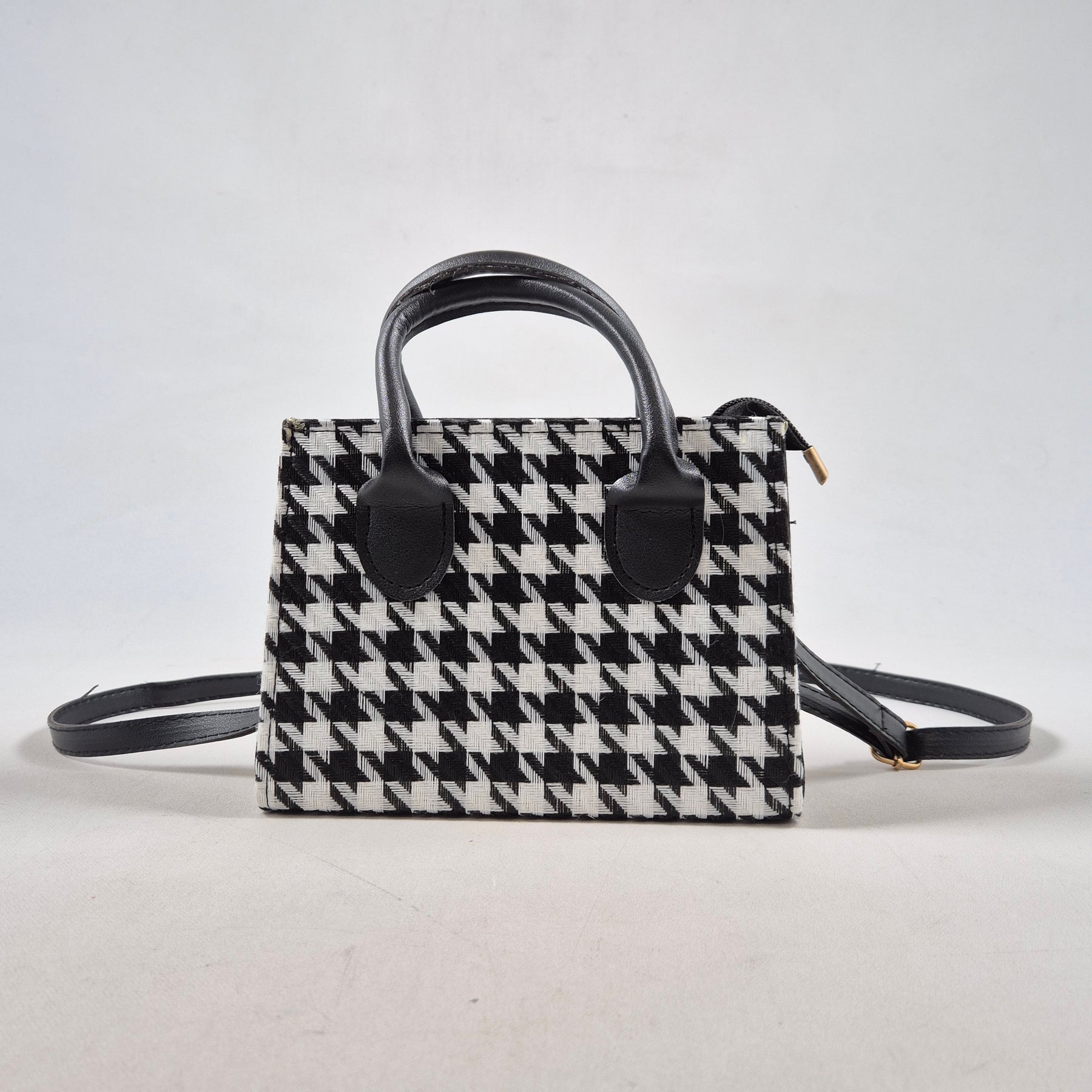Upptäck en stilikon – denna chic handväska med houndstooth-mönster ger en tidlös elegans till din garderob.